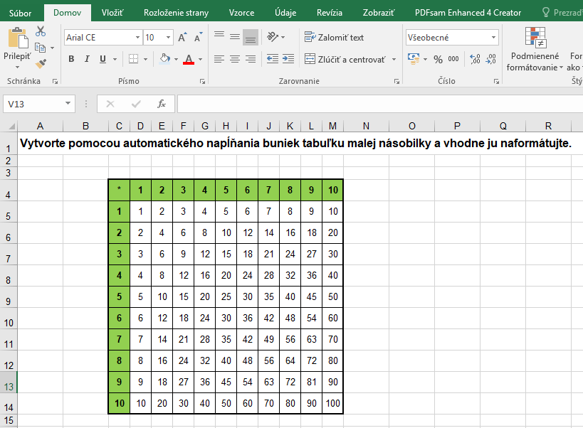 6. V hárku u6 vytvorte pomocou automatického napĺňania buniek tabuľku malej násobilky a vhodne ju naformátujte.